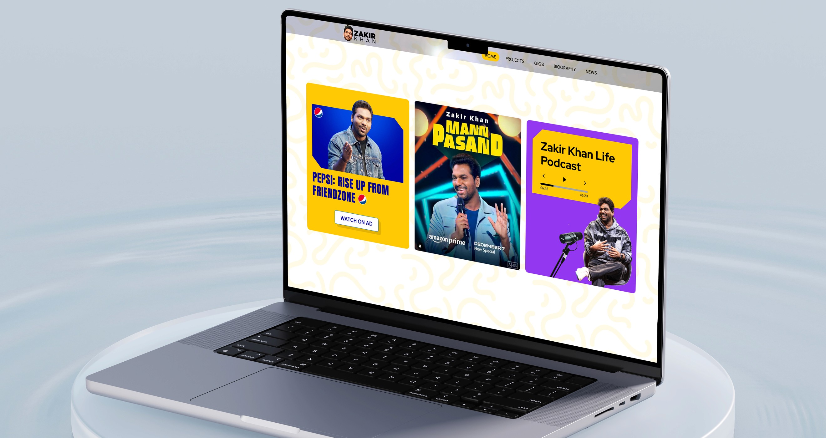 We designed an engaging, responsive website for Zakir Khan, blending UX/UI design, logo animation, and a cohesive visual identity. The platform showcases his recent and upcoming works, offers a seamless ticket booking experience, and provides a glimpse into his journey with videos, photos, and insights about the artist.